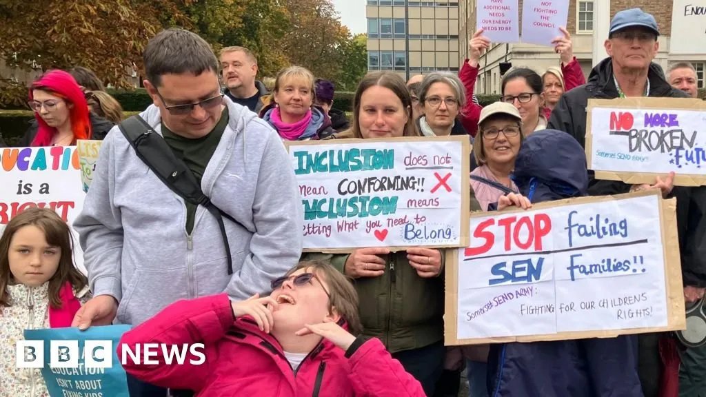 than 50 parents and children gathered outside County Hall in Taunton, Somerset, angry about the authority’s Send service which they said was failing their children,and leaving parents “exhausted”.