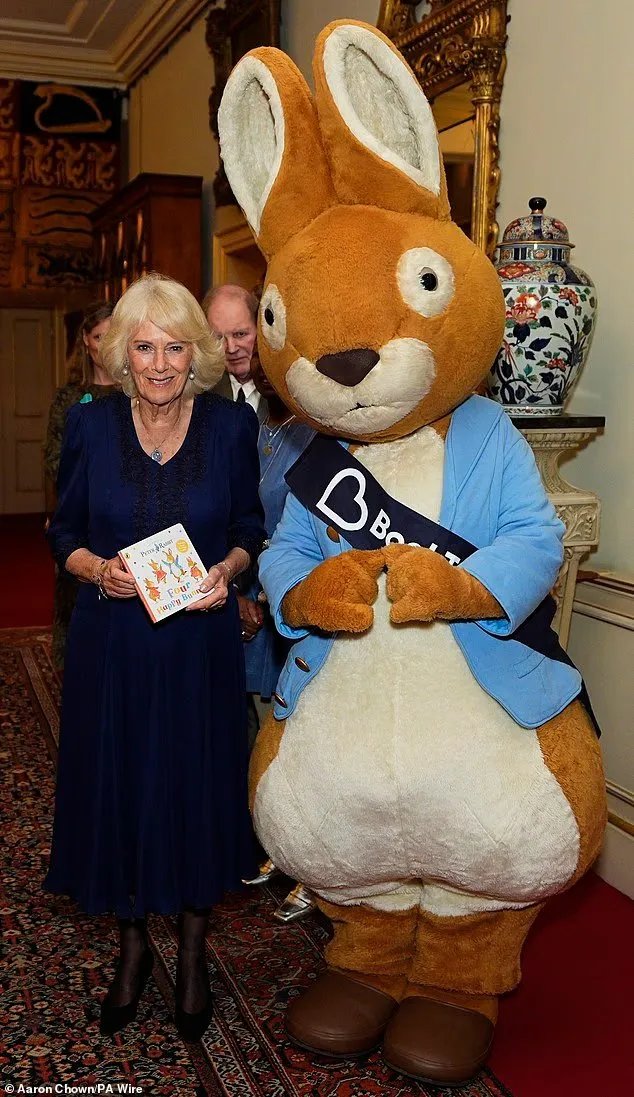 Queen Camilla welcomed Peter Rabbit to Clarence House today to celebrate the milestone anniversary of the BookTrust charity.