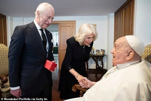 King Charles (pictured with Queen Camilla and the late Pope Francis in April last year) will become the first monarch in 500 years to pray in public with a pope next week