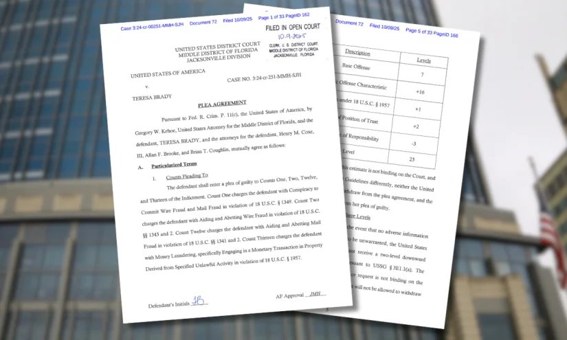 Teresa Brady, who spent 24 years as president of Duval Teachers United in Jacksonville, pleaded guilty in federal court Oct. 9 to multiple counts. Co-defendant Ruby George, who was the union’s vice president for 24 years, pleaded guilty in August.