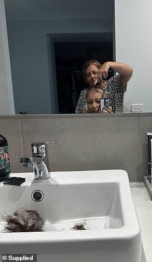 When her hair started falling out as a result of cancer treatment, Jess bit the bullet and had her mother Mary shave it off (left). Her hair is slowly returning (right), and she now also embraces wearing a wig