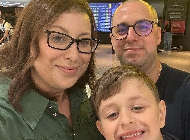 Australian mum Jess was on a family beach holiday with her husband John and young son Nicholas (all pictured) when she discovered a lump in her breast