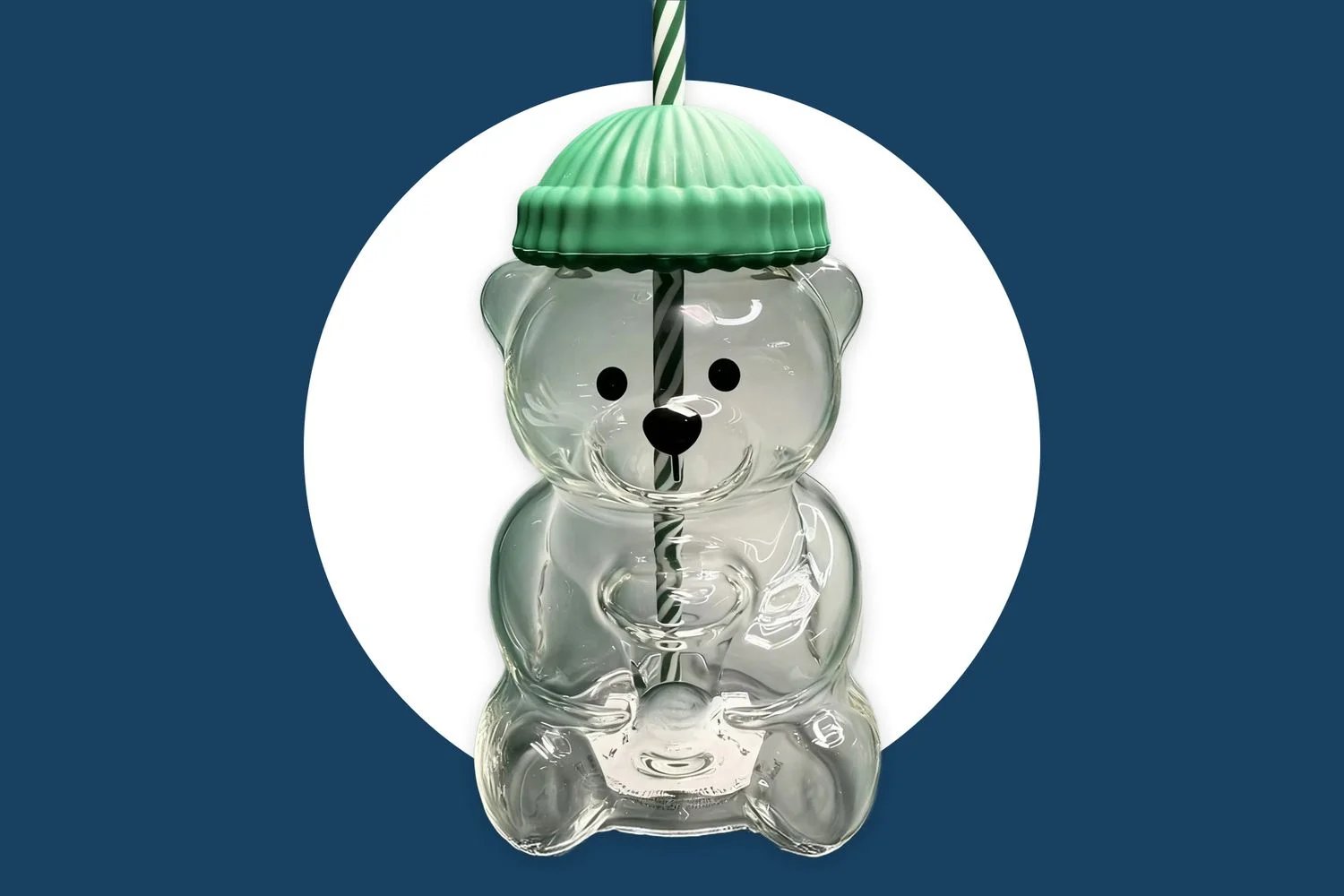 The best part? These dupes are actually in stock online, so you can add one to your cart without coordinating a tactical shopping plan and worrying about long lines. Walmart’s rendition is made from glass, just like the original, and holds 20 fluid ounces, the same size as a Starbucks venti. Most importantly, it still has a colorful blue hat perched on top of the bear’s head.