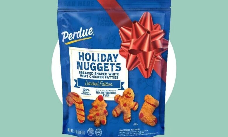 - Perdue is releasing limited-edition holiday chicken nuggets in festive shapes — candy cane, Christmas tree, gingerbread man, and stocking — made with white meat.