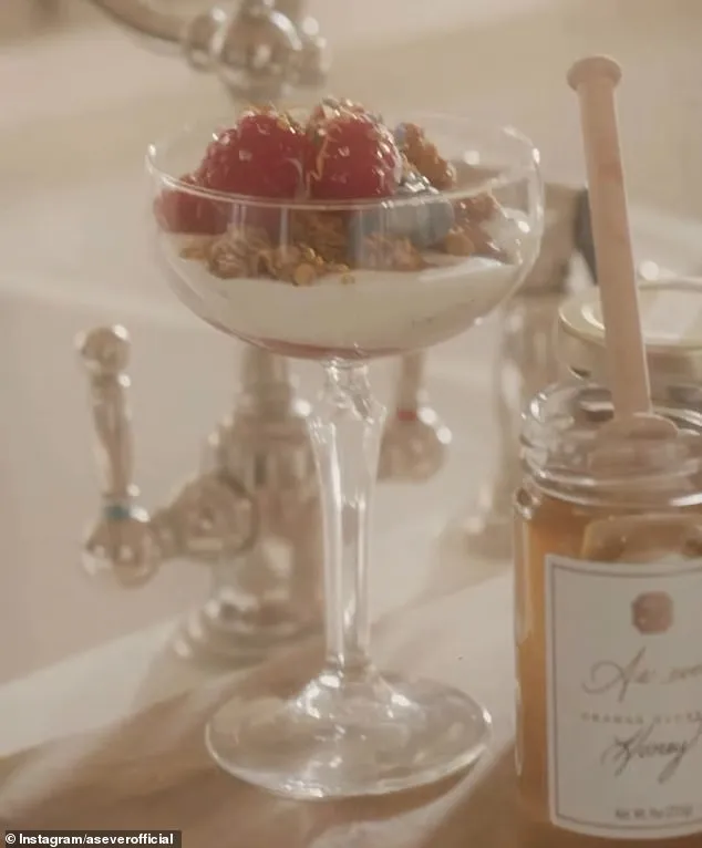 ‘You could do a yogurt parfait in a normal bowl, or you could just make it a little bit special,’ she suggested in the clip as she showcased the delicate coups.